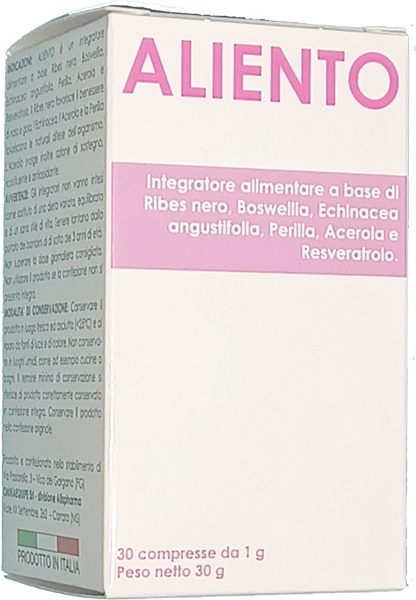 ALIENTO | coadiuvante nelle forme allergiche delle vie aeree superiori | Bambini sotto i sei anni 1 cpr al giorno per due settimane, 2 settimane di sospensione poi 1 cpr al giorno per 3 settimane. | € 24,90 |